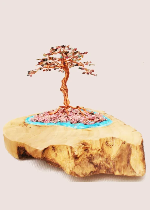 Chất Liệu : Đá Tourmaline Đa Sắc , Gỗ Tự Nhiên, Đá Ruby, Dây Đồng , Bột Đá Quý….